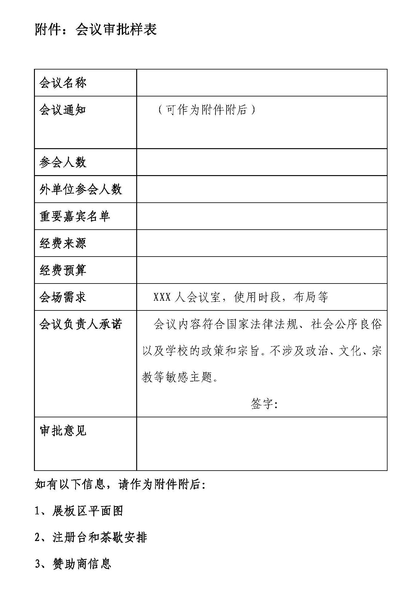 第二条 会议负责人需在会议召开前15日报学院备案审批,报送材料见附件一。审批备案实行:单次会议单次审批,系列会议首次审批。
