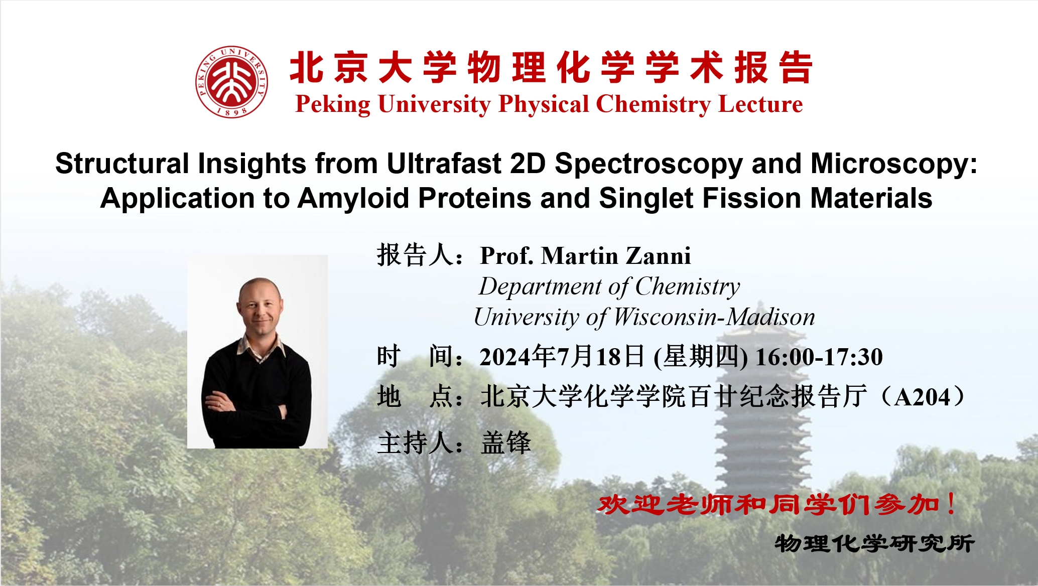 【122cc太阳成集团物理化学学术报告】Structural Insights from Ultrafast 2D Spectroscopy and Microscopy: Application to Amyloid Proteins and Singlet Fission Materials