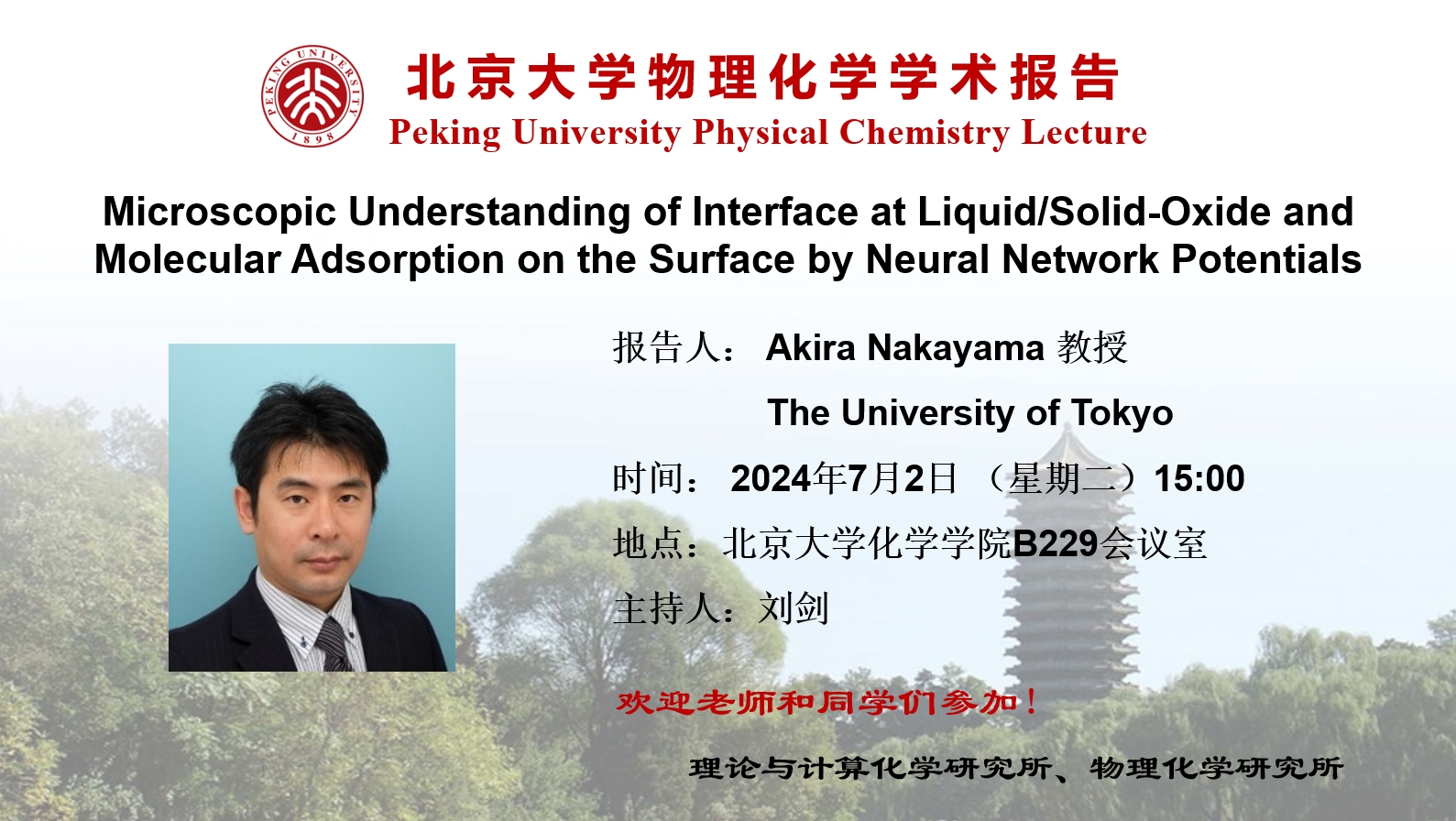 【122cc太阳成集团物理化学学术报告】Microscopic Understanding of Interface at Liquid/Solid-Oxide and Molecular Adsorption on the Surface by Neural Network Potentials
