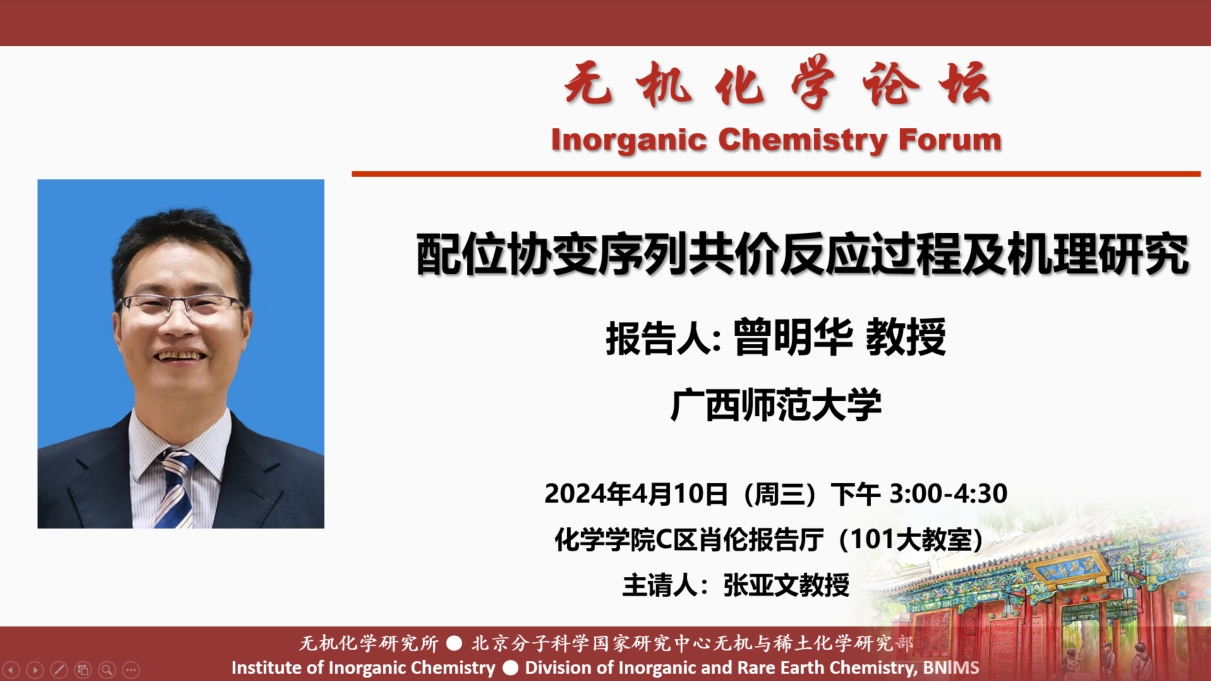 【122cc太阳成集团无机化学学术论坛】配位协变序列共价反应过程及机理研究