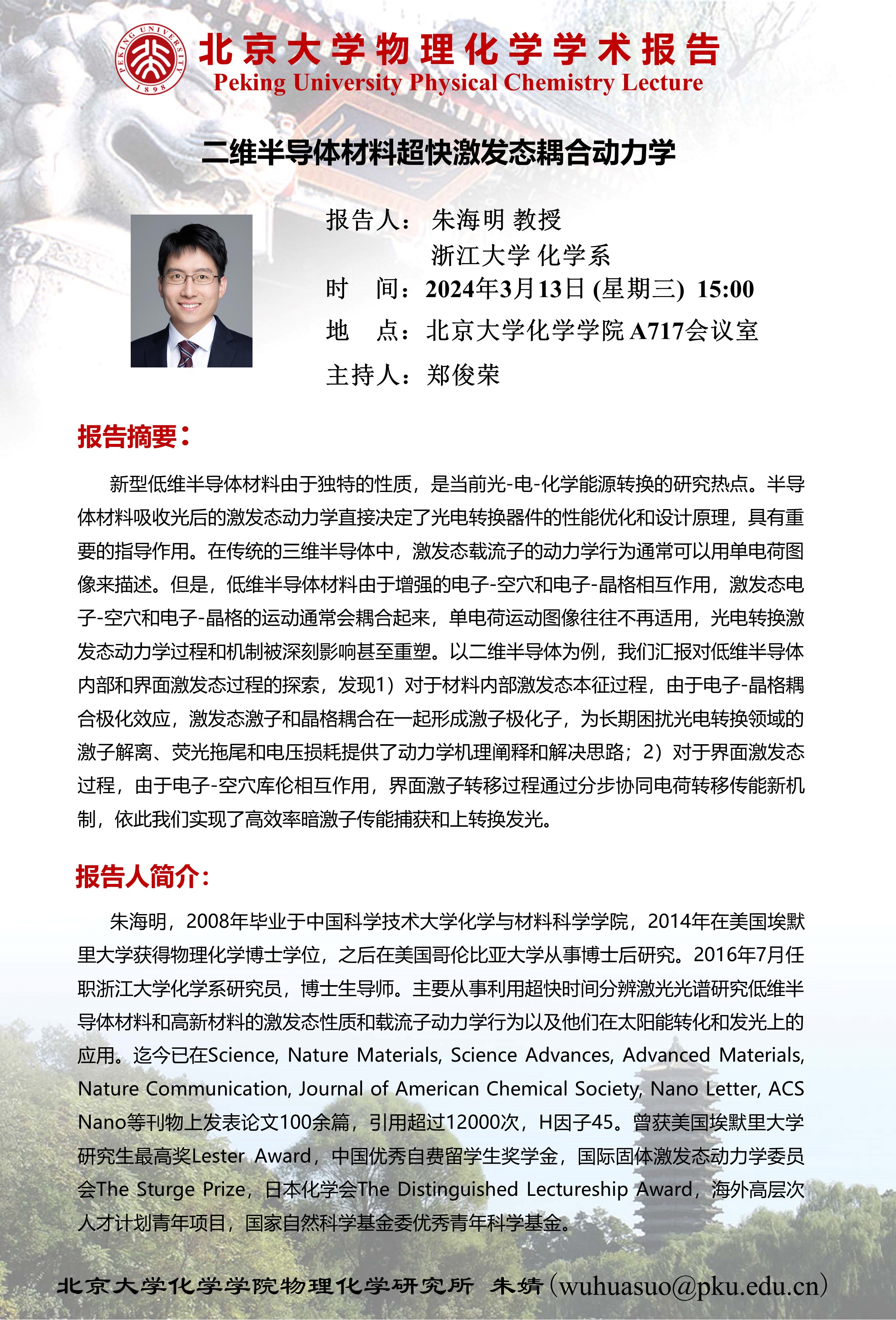 【122cc太阳成集团物理化学学术报告】二维半导体材料超快激发态耦合动力学