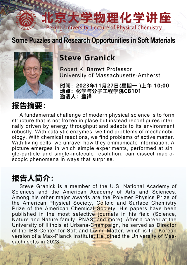【物理化学学术报告】Some Puzzles and Research Opportunities in Soft Materials