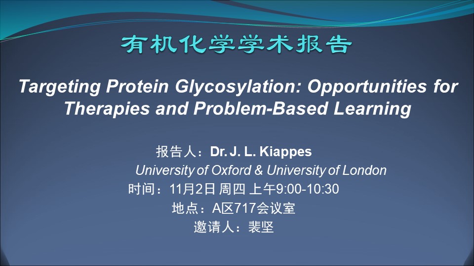 【有机化学OPSS学术报告】Targeting Protein Glycosylation: Opportunities for Therapies and Problem-Based Learning