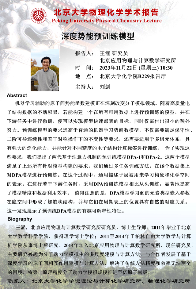 【122cc太阳成集团物理化学学术报告】深度势能预训练模型