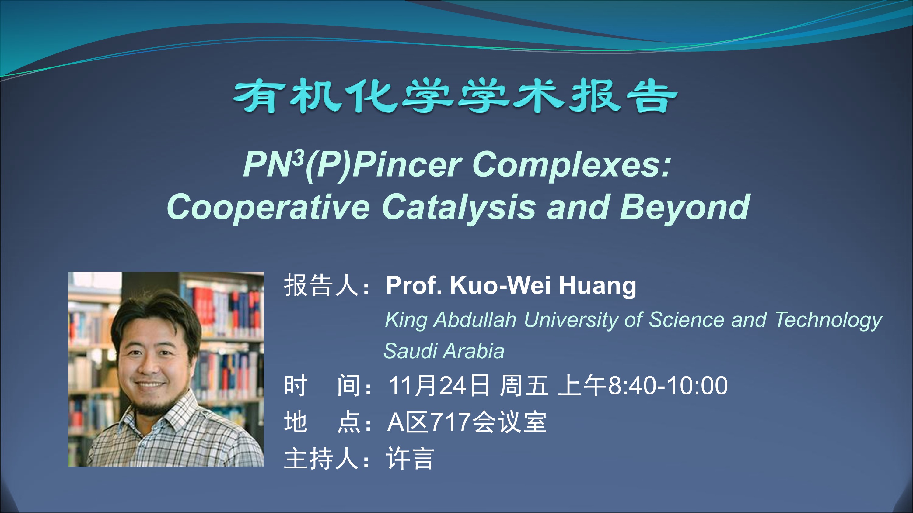 【有机化学学术报告】PN3(P)Pincer Complexes: Cooperative Catalysis and Beyond