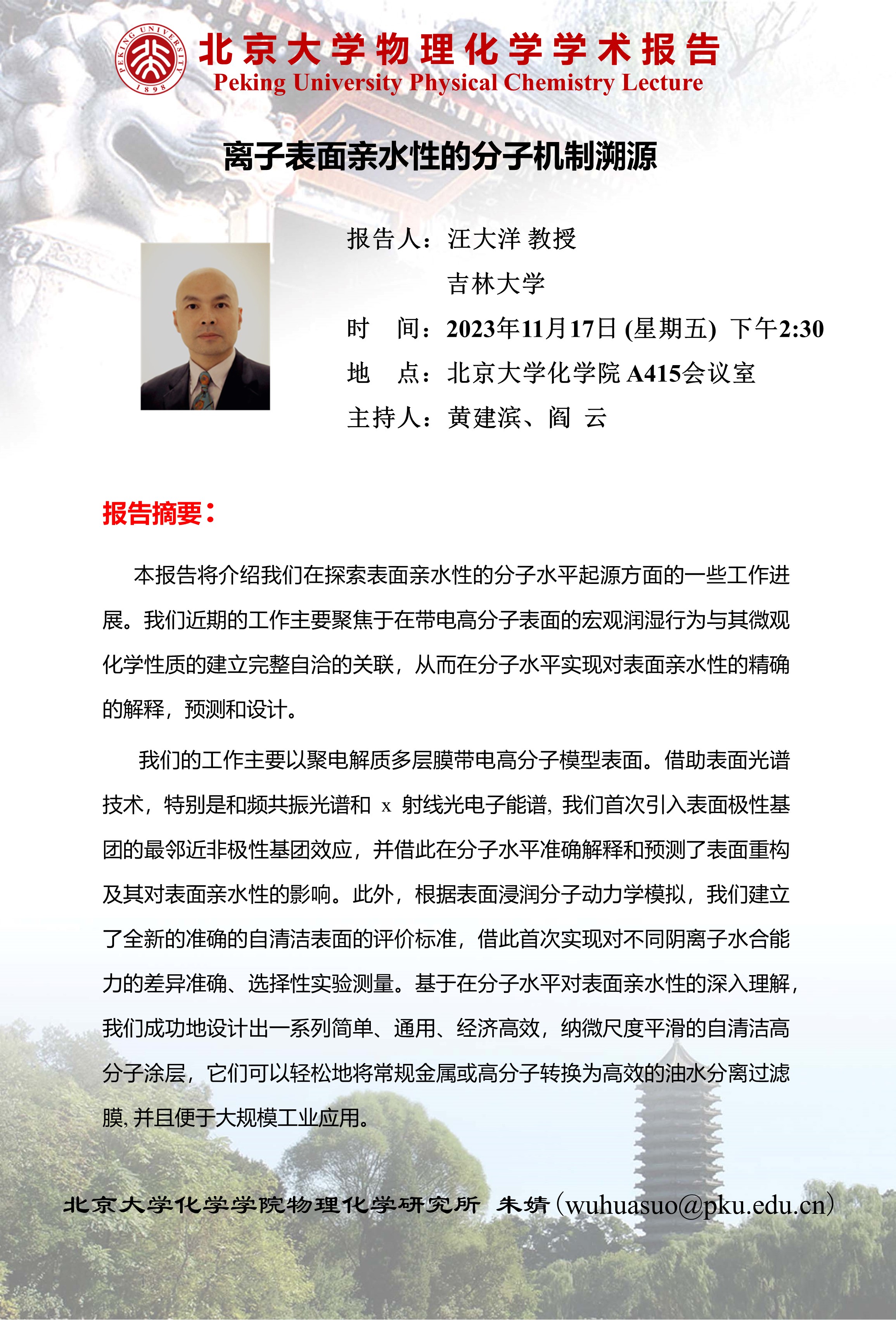 【122cc太阳成集团物理化学学术报告】离子表面亲水性的分子机制溯源