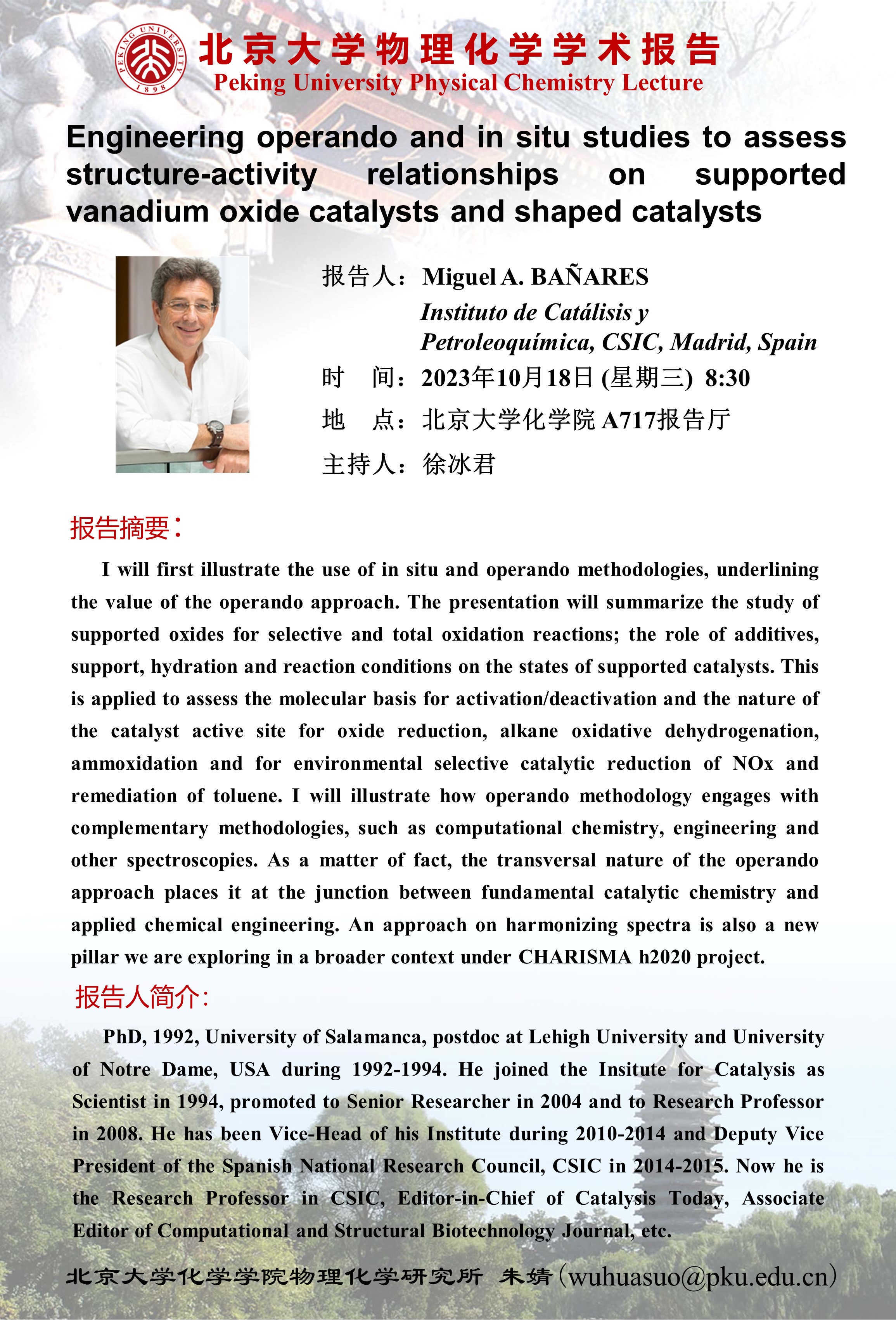 【122cc太阳成集团物理化学学术报告】Engineering operando and in situ studies to assess structure-activity relationships on supported vanadium oxide catalysts and shaped catalysts
