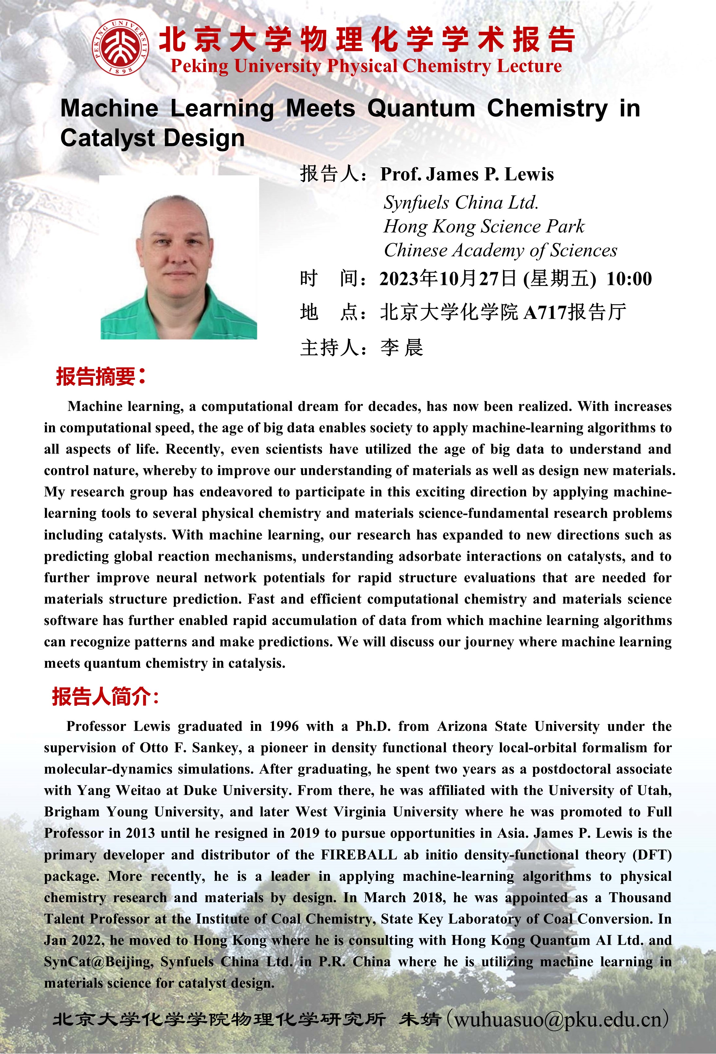 【122cc太阳成集团物理化学学术报告】Machine Learning Meets Quantum Chemistry in Catalyst Design