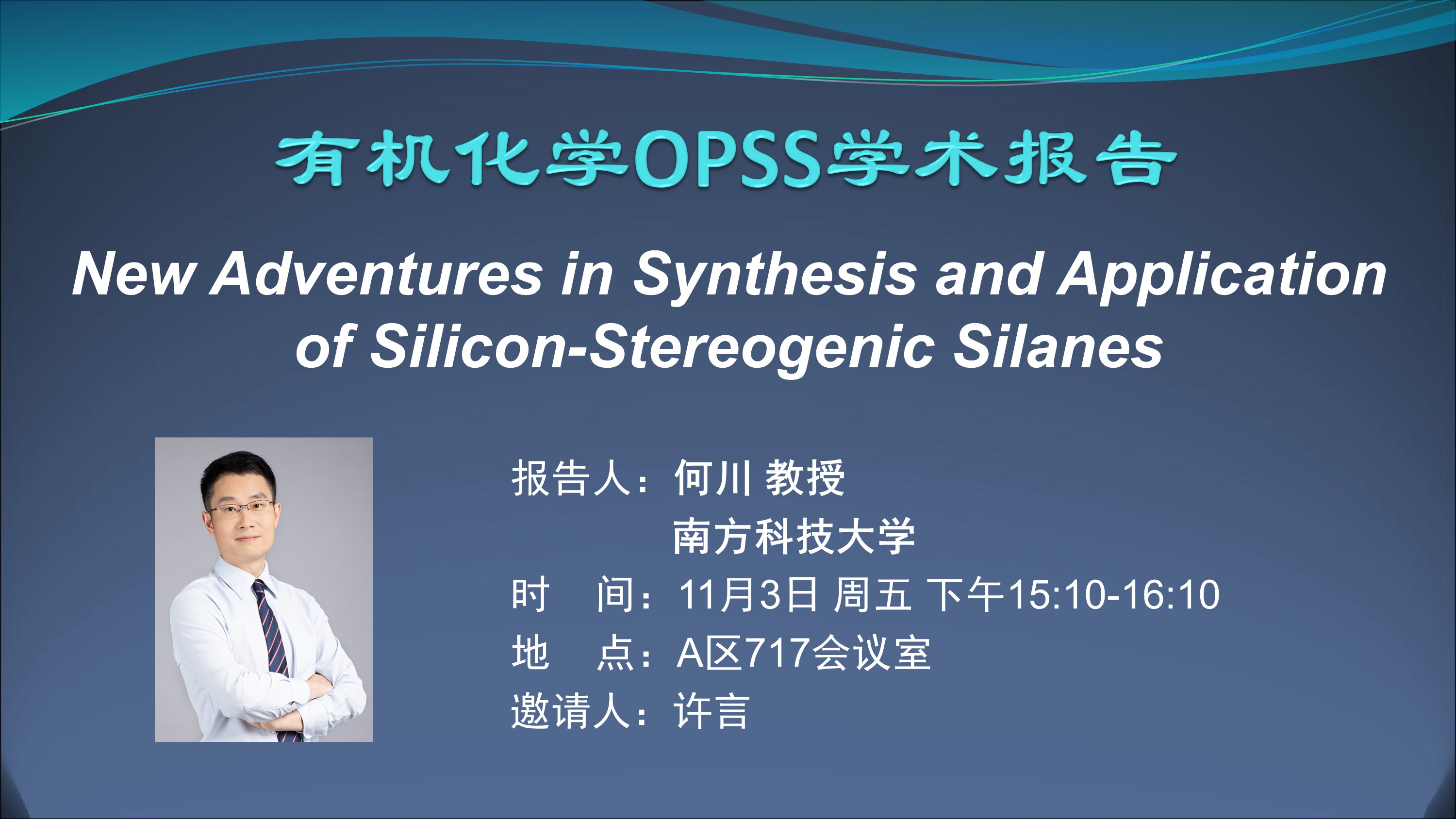 【有机化学OPSS学术报告】New Adventures in Synthesis and Application of Silicon-Stereogenic Silanes