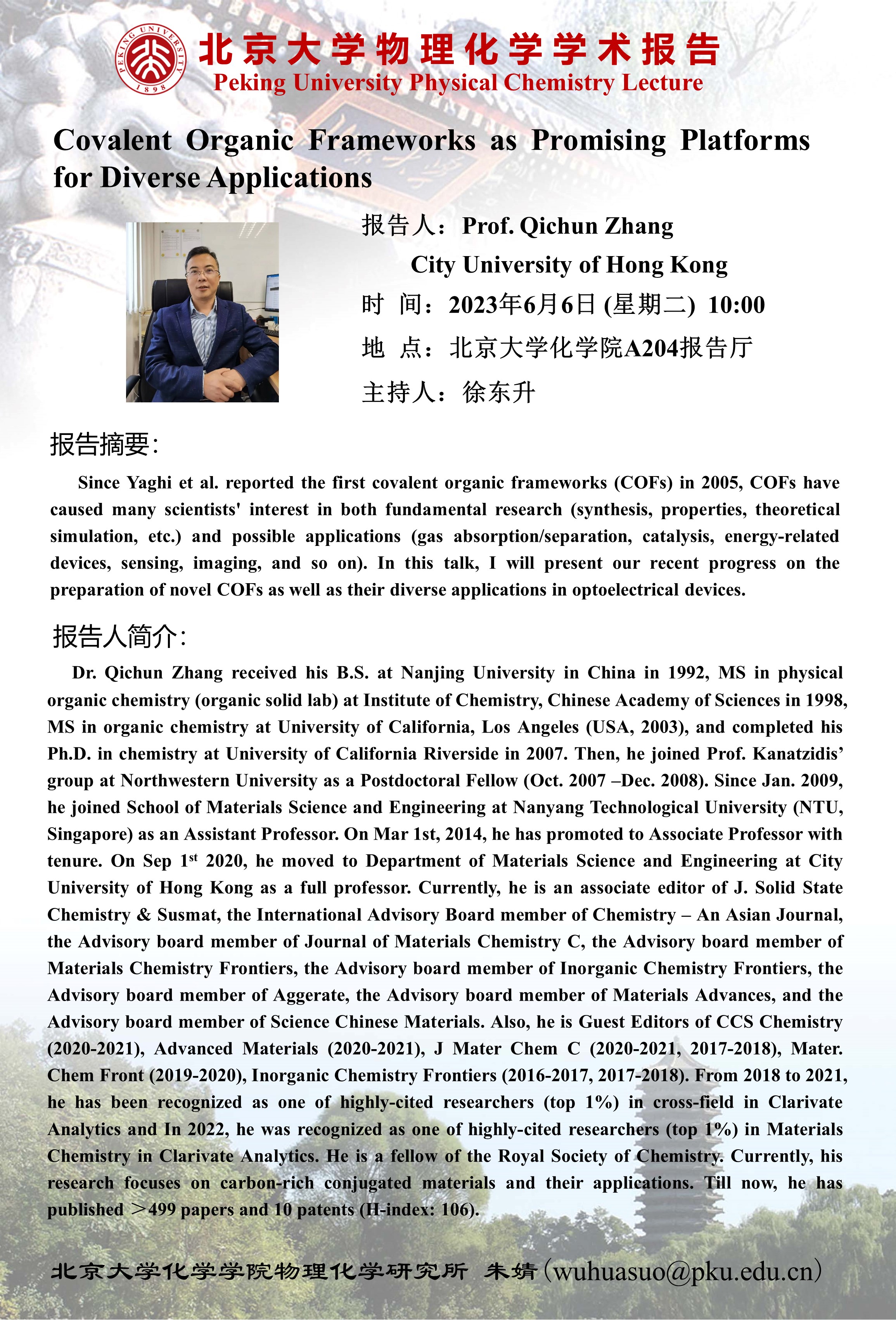 【122cc太阳成集团物理化学学术报告】Covalent Organic Frameworks as Promising Platforms for Diverse Applications