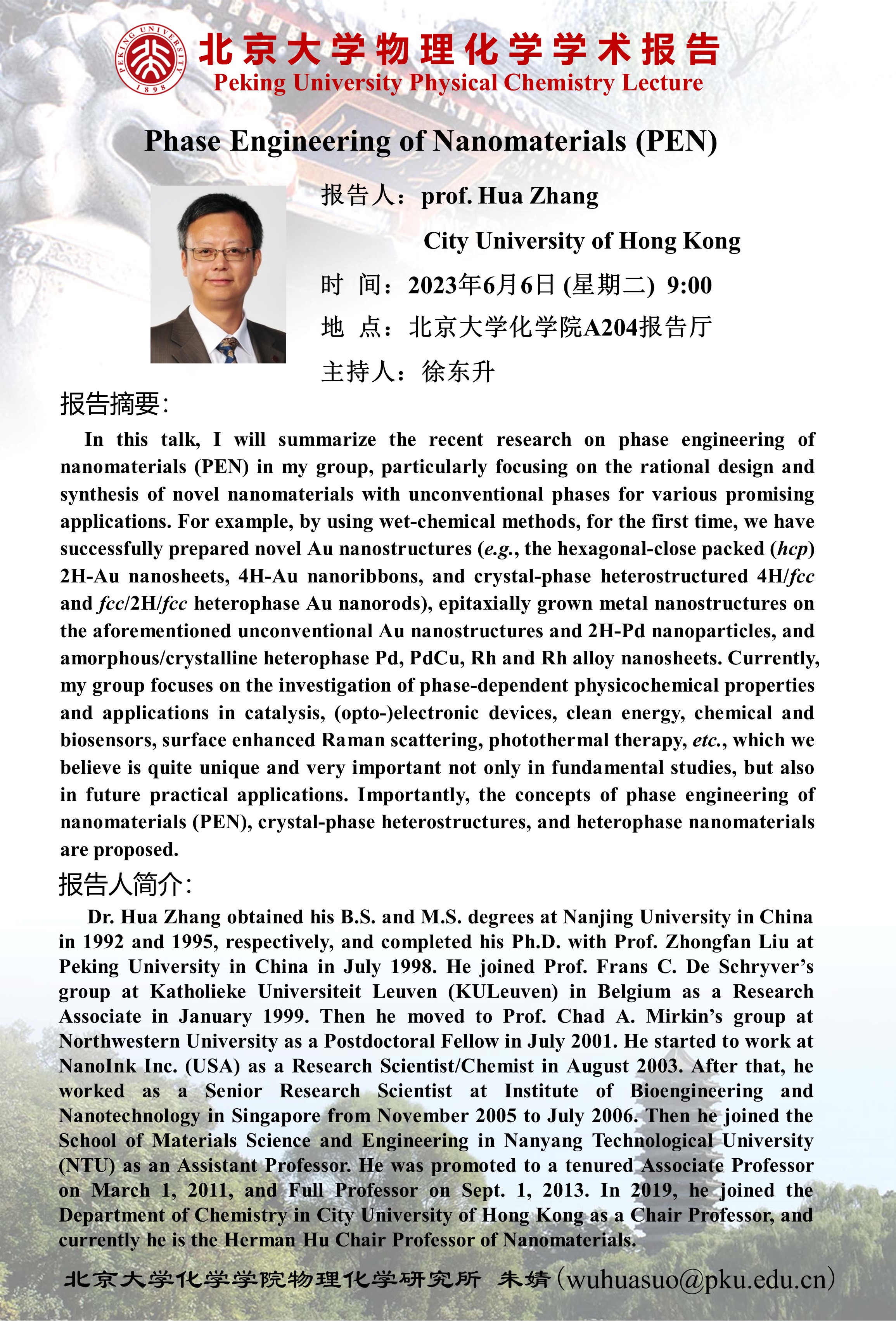 【122cc太阳成集团物理化学学术报告】Phase Engineering of Nanomaterials (PEN)