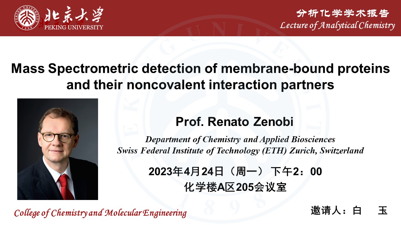 【分析化学学术报告】Mass Spectrometric detection of membrane-bound proteins and their noncovalent interaction partners
