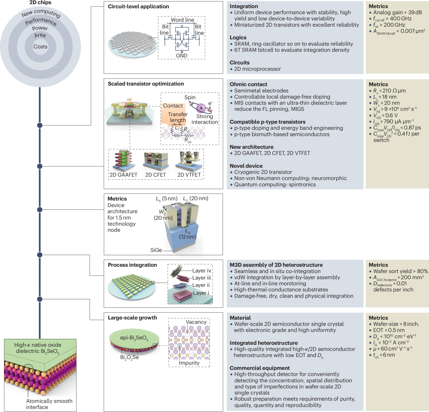 图2. 二维氧化铋硒材料的未来芯片应用路线图(Nature. Rev. Electr. Eng.2025,2, 494–513)