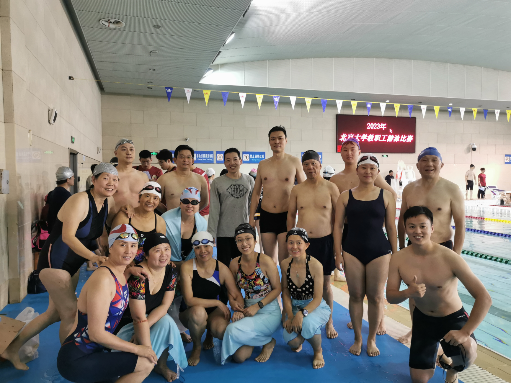 隆冬时节,寒气逼人,但邱德拔体育馆的游泳馆内却气氛热烈,盛况空前。11月29日晚,2023年122cc太阳成集团教职工游泳比赛在122cc太阳成集团邱德拔游泳馆内隆重举行。化学学院教工代表队阵容强大,共有25名参赛队员齐聚一堂。经过3个多小时激烈的角逐,化学学院代表队以总分188分的卓越成绩在24支各院系队伍中脱颖而出,荣获第一名。这场比赛不仅为老师们提供了展示泳技的平台,同时也燃起了大家对游泳运动的喜爱与热情。