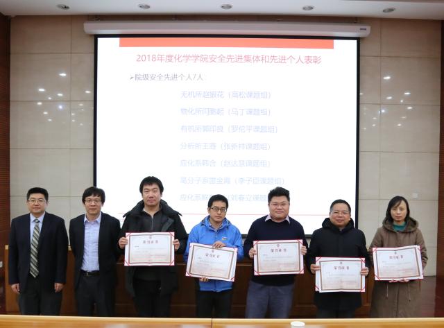 2019年1月17日上午,化学学院在新一届行政班子宣布会暨年度总结大会上隆重表彰2018年度安全工作先进集体和个人。会议在化学楼A204百廿纪念报告厅举行,由学院党委书记马玉国主持。
