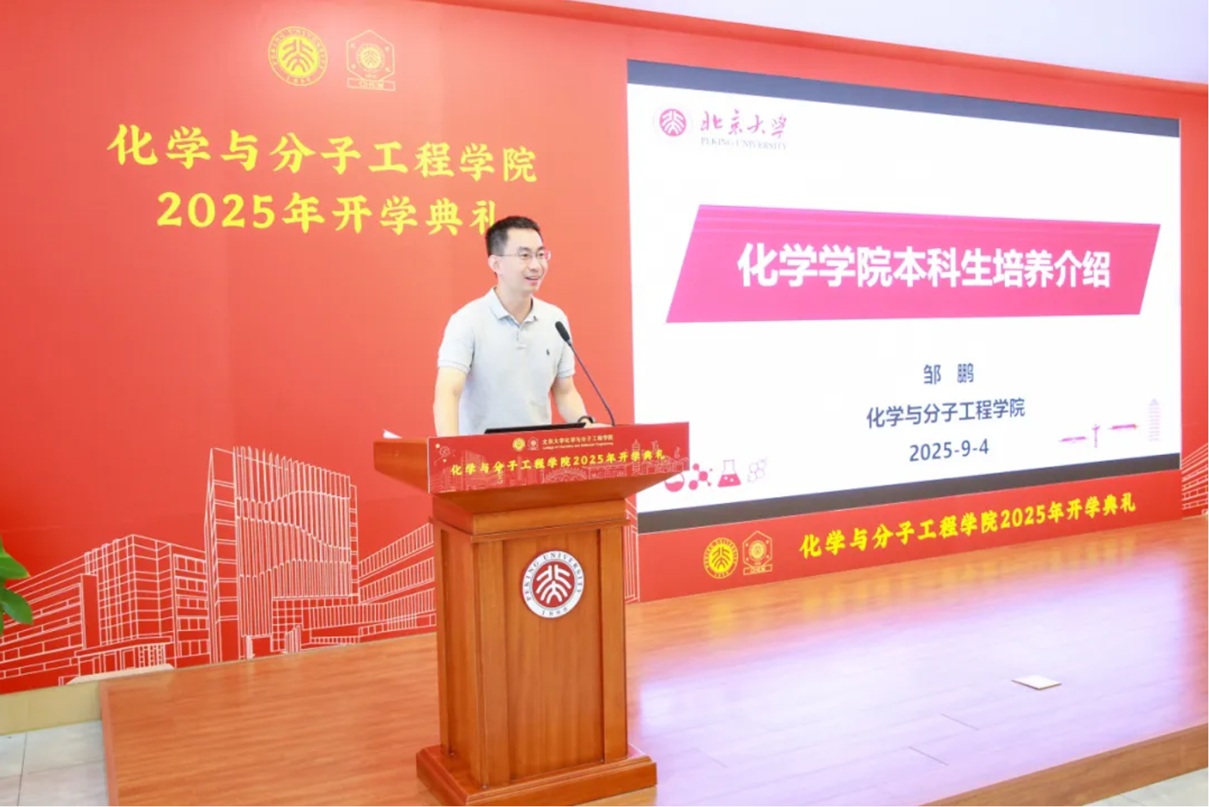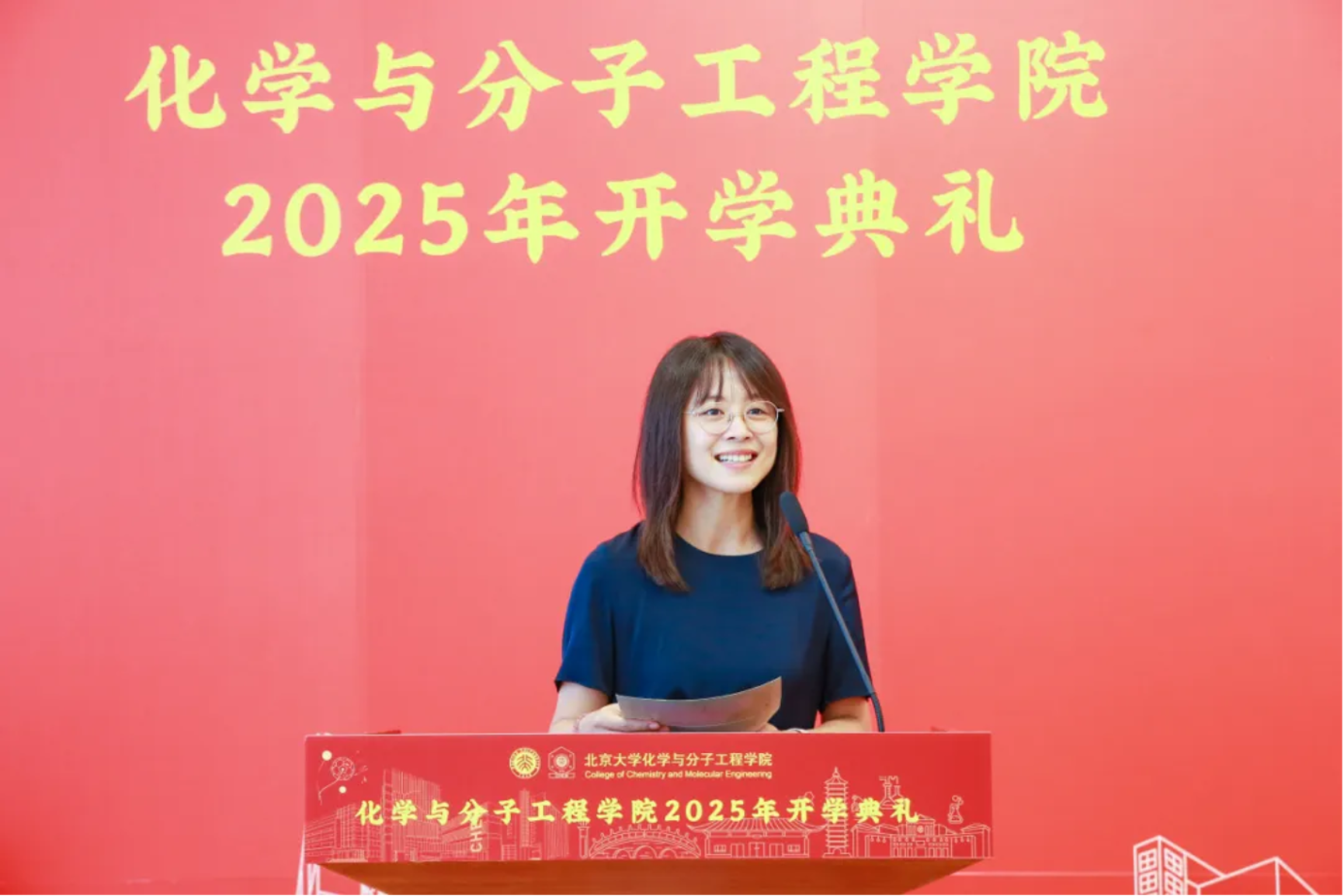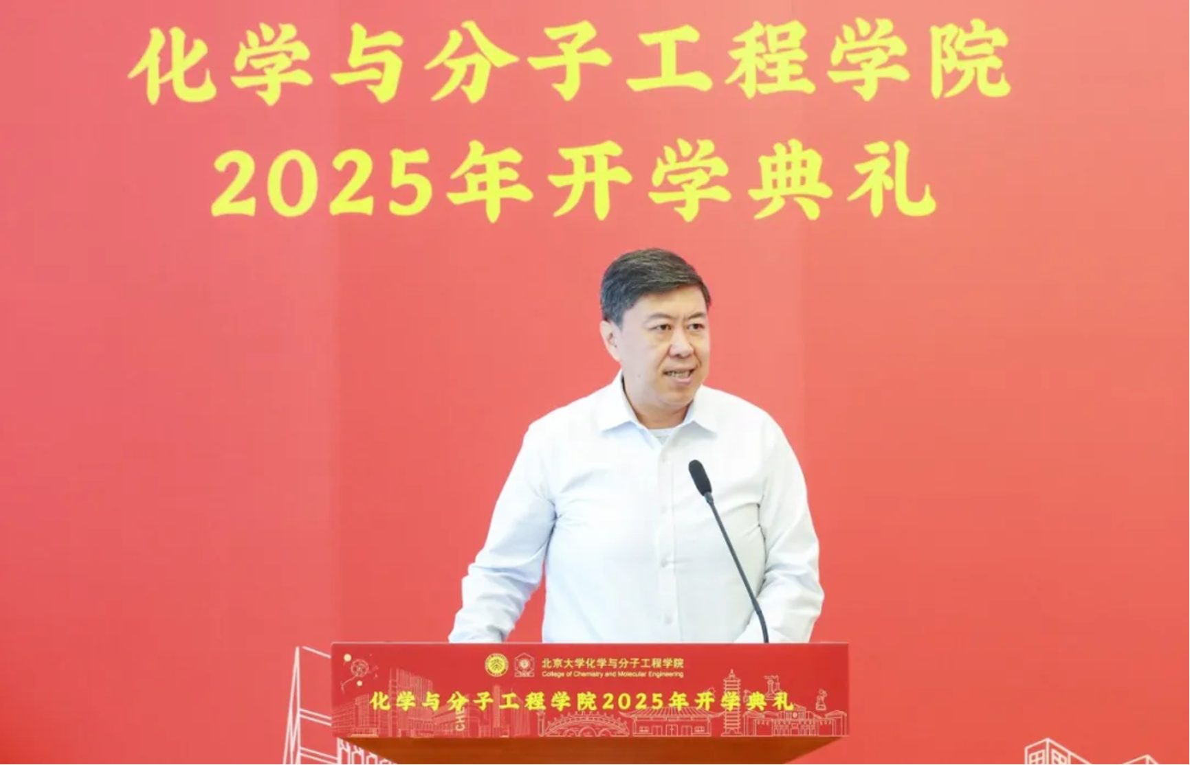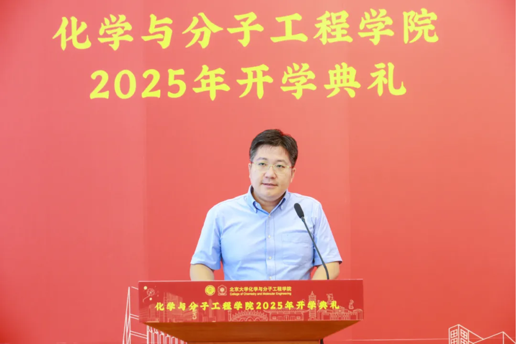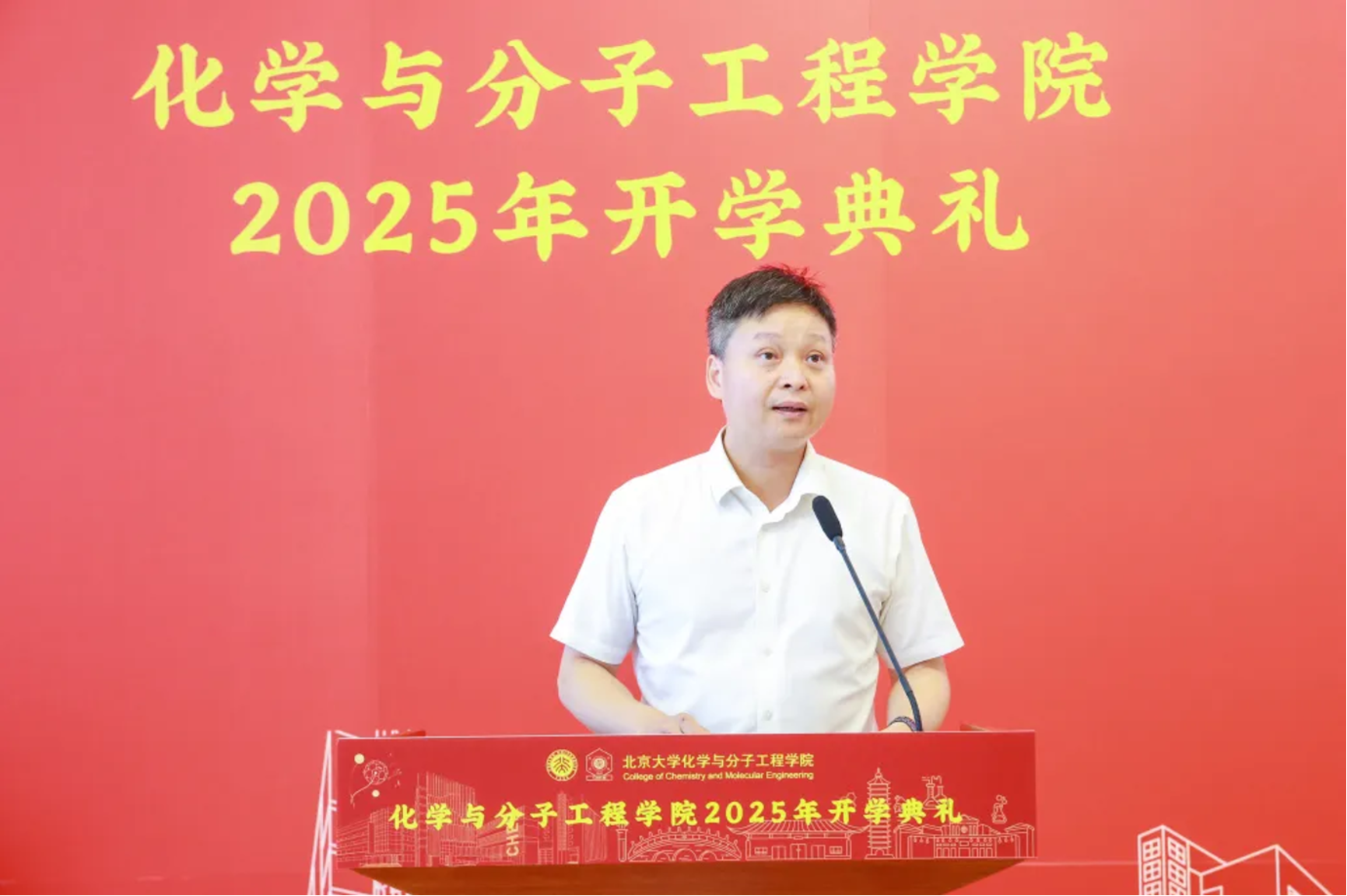 首先,化学学院院长彭海琳教授致辞。他代表学院向2025级全体新生表示热烈欢迎,并提出三点期望:一要树立报国之志,争做新时代的“赛先生”,将个人成长自觉融入民族复兴与国家发展进程,以科学精神服务社会;二要主动拥抱变化,在挑战中实现成长,做到严于自律、善于调整,勇于面对挫折,并积极借助师长与学院的支持不断超越自我;三要始终保持热爱,在探索中点燃未来,敢于跨界学习与合作,努力成为能够引领时代的复合型创新人才。他勉励同学们在燕园四年中,不仅要收获知识与能力,更要深刻理解责任、珍视真诚,书写无愧于心的青春篇章。