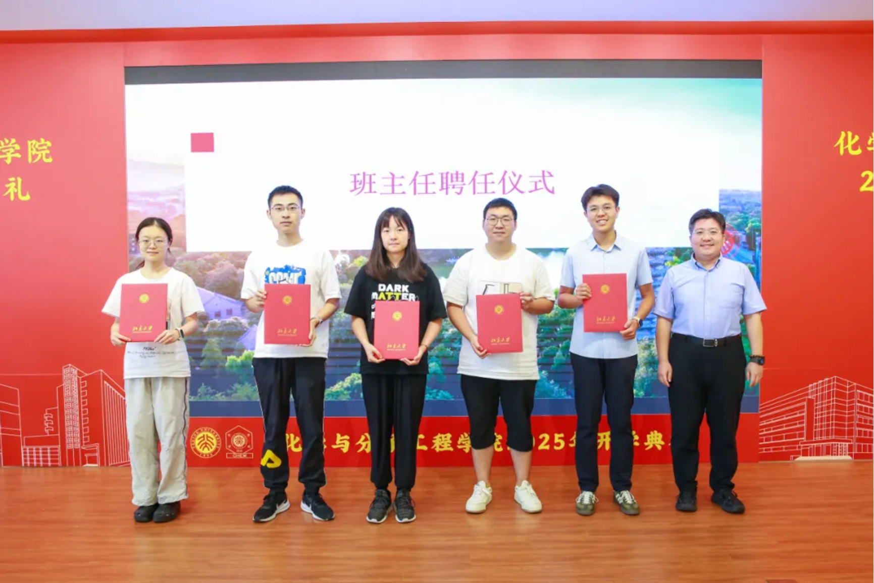 学院每年都会选聘优秀博士研究生担任本科新生班主任,陪伴同学们共同成长,直至顺利毕业。2025级本科生年级主任黄闻亮老师为班主任们颁发聘书。