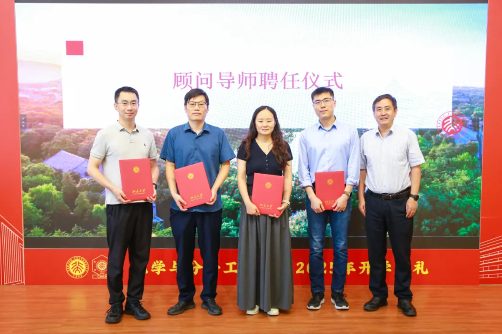 化学学院历来高度重视本科生教学与科研工作。为进一步加强对学生的学业指导与支持,学院聘请多位教师担任2025级本科生顾问导师。朱戎、刘志伟、邹鹏、唐小燕作为顾问导师代表上台接受聘书,党委书记裴坚为他们颁发聘书。