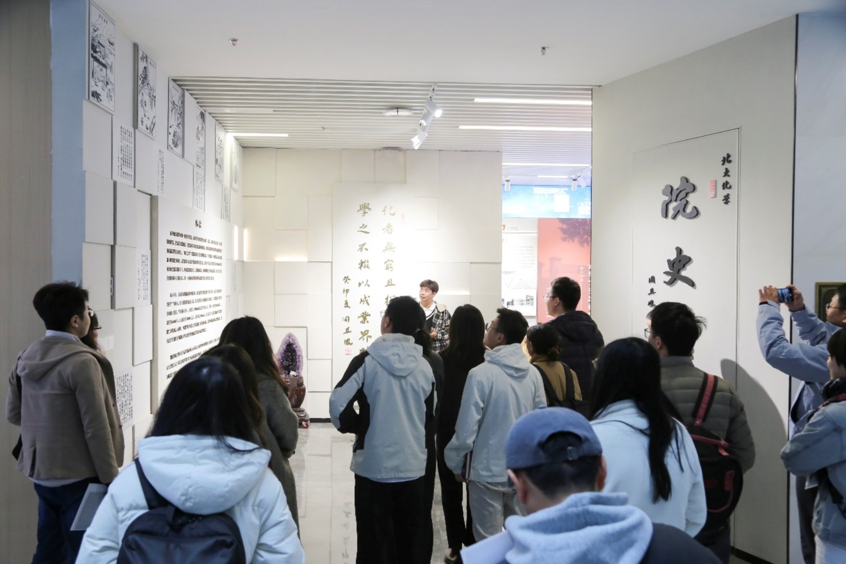 培训尾声,全体新员工前往学院C区一层院史馆参观学习。通过志愿者讲解,结合院史馆珍贵的史料、实物等资料,新员工们深入了解了北大化学的百年积淀、学术成就与育人传统,进一步增强了对学院的归属感与自豪感。