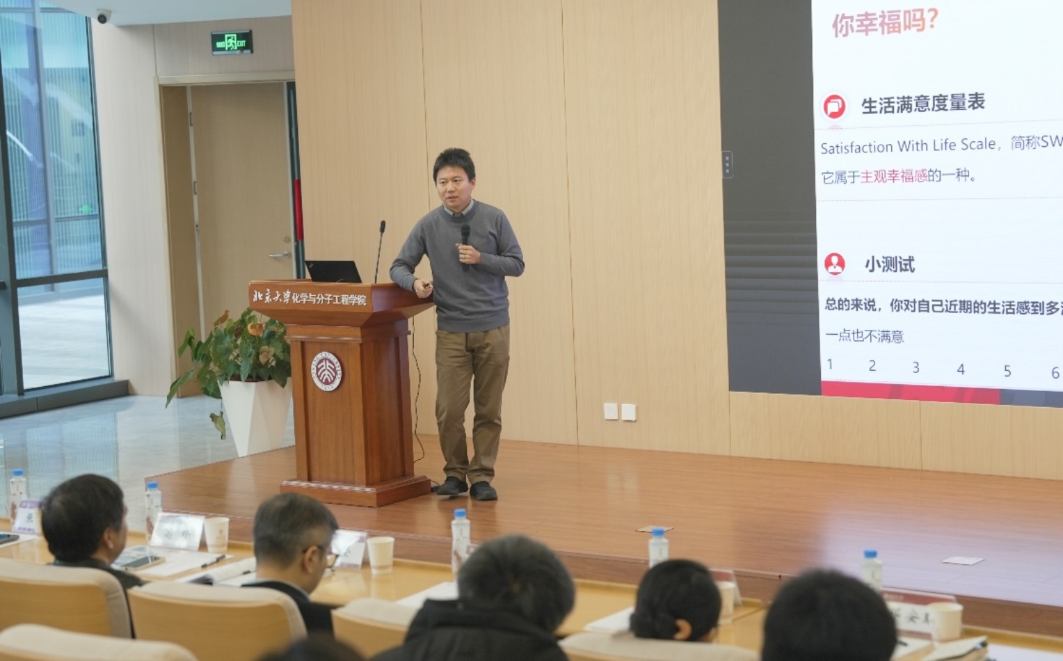刘志博副院长作“博士后工作情况介绍与思考”报告,他回顾了北大化学在国家不同历史时期的重要贡献,号召在座博士后把握国家科技转型的关键时期,投身于建设世界顶尖化学学科的宏伟目标。他还介绍了学院支持博士后成长的资助体系,梳理了博士后相关项目和基金申报情况。