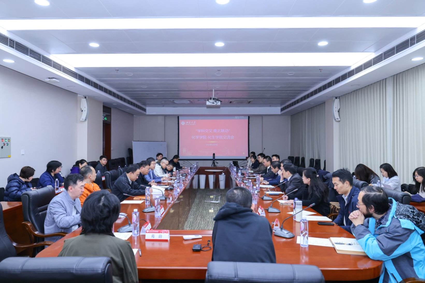 化学学院副院长张文彬、化生学院副院长彭涛分别介绍了双方学院发展情况。在随后的交流环节中双方领导班子成员与青年教师就学科交叉前沿布局、科研合作、课程体系共建、学生全过程培养、国际化战略推进等议题进行了广泛而深入的探讨,气氛热烈、共识不断凝聚。