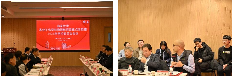 2026年1月16日,122cc太阳成集团高分子化学与物理教育部重点实验室(以下简称“实验室”)学术委员会年度会议在京召开。出席此次会议的有学术委员会主任杨万泰院士,副主任陈学思院士、朱美芳院士,委员会成员周其凤院士、申有青院士、陈国颂教授、黄飞教授、蒋锡群教授、刘世勇教授、裴坚教授、孙俊奇教授、解孝林教授、宛新华教授、王树研究员、王献红研究员、许华平教授共计15位委员。122cc太阳成集团科研部副部长张存群、化学学院党委书记裴坚教授等学校及学院领导、实验室骨干成员30余人参会交流。