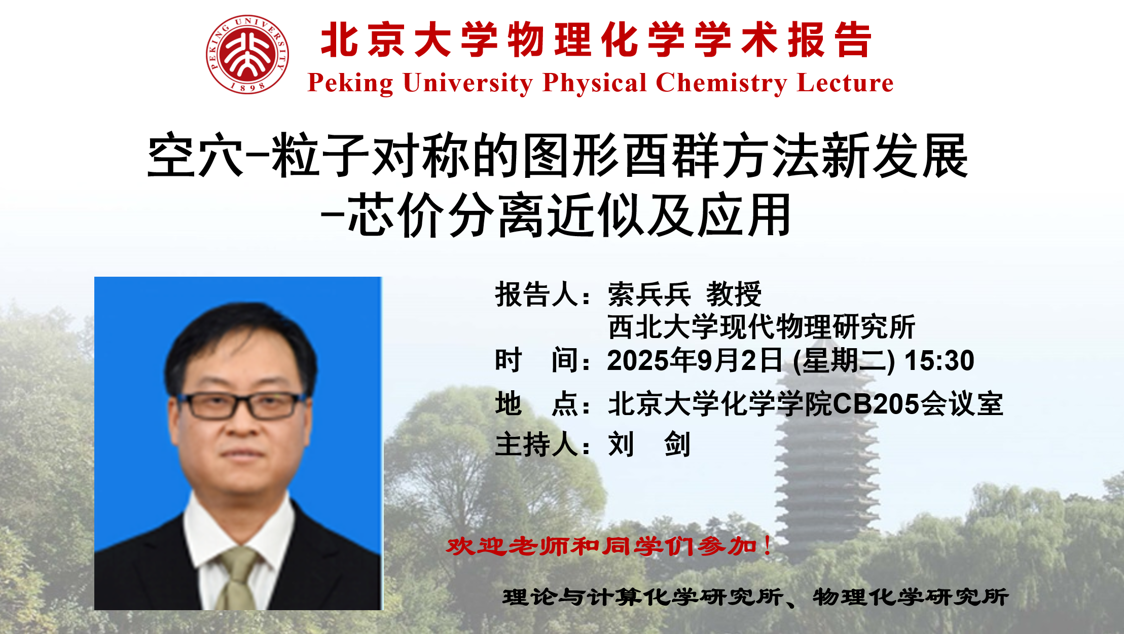 【122cc太阳成集团物理化学学术报告】空穴-粒子对称的图形酉群方法新发展-芯价分离近似及应用