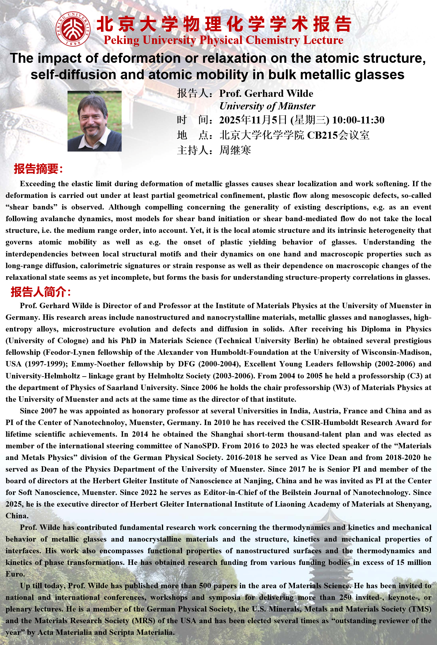 【122cc太阳成集团物理化学学术报告】The impact of deformation or relaxation on the atomic structure, self-diffusion and atomic mobility in bulk metallic glasses