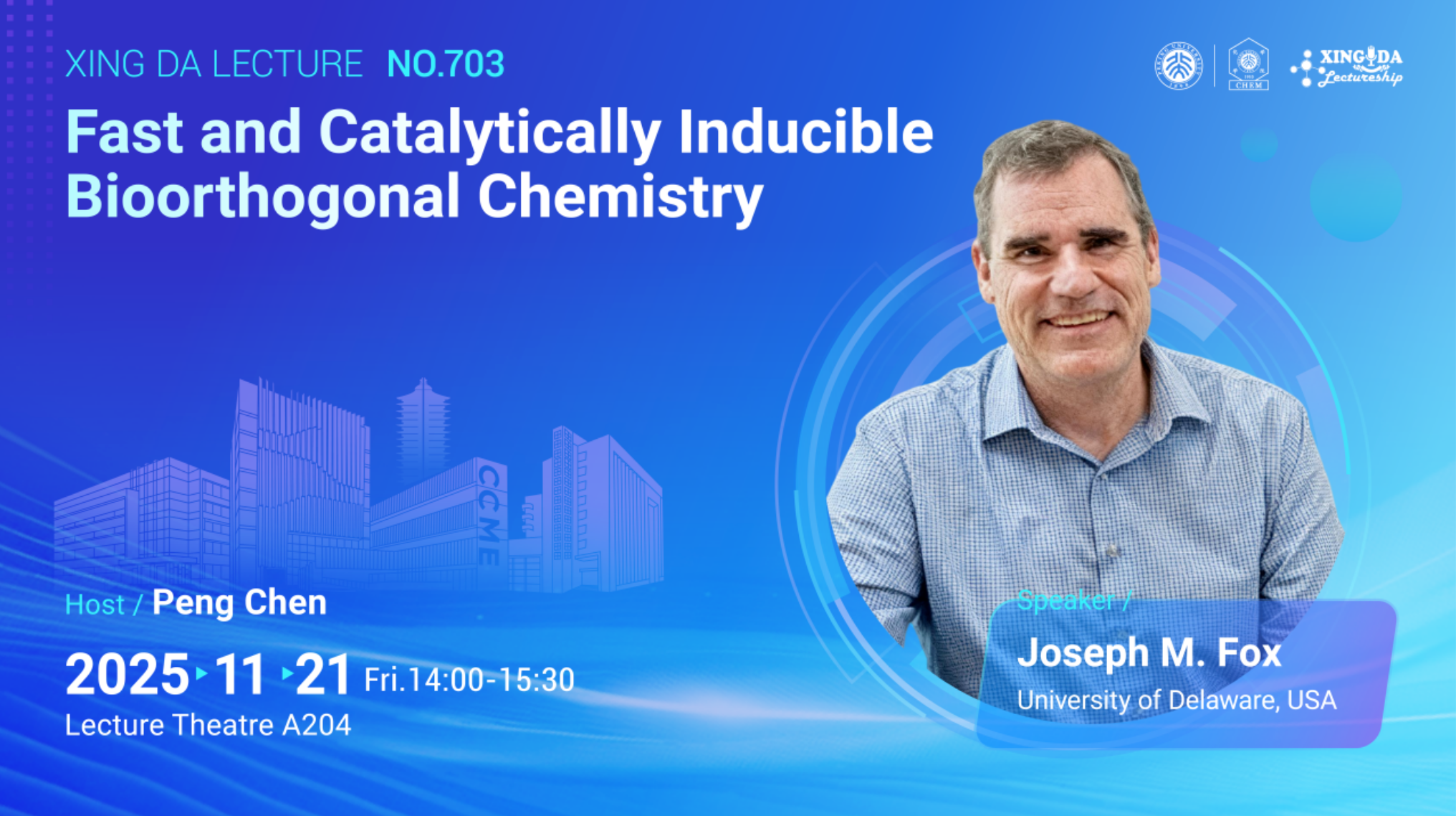 This seminar will discuss recent advances in development of the tetrazine ligation– the fastest known bioorthogonal reaction. Tetrazine ligation has been used broadly by the scientific community, and finds application across chemical biology, medicine, nuclear medicine, and material science. The talk will describe advances in photochemistry, flow chemistry, and cross-coupling chemistry that have enabled access to improved trans-cyclooctene and tetrazine reagents including a suite of tool molecules developed in collaboration between UD and Pfizer. The talk will also discuss the catalytic activation of bioorthogonal chemistry, or CABL, a new method for ‘turning on’ rapid bioorthogonal chemistry in vivo and in cellular context through the oxidation of dihydrotetrazines to tetrazines. Enzymatic catalysts as well as photocatalysts with dye-selective activation with blue, green, red or NIR light will be described. Kinetic studies have been used to develop a proposal explaining the rapid kinetics of CABL and the biocompatibility of CABL-photocatalysts due to chemoselective dihydrotetrazine oxidation in preference to singlet oxygen production.