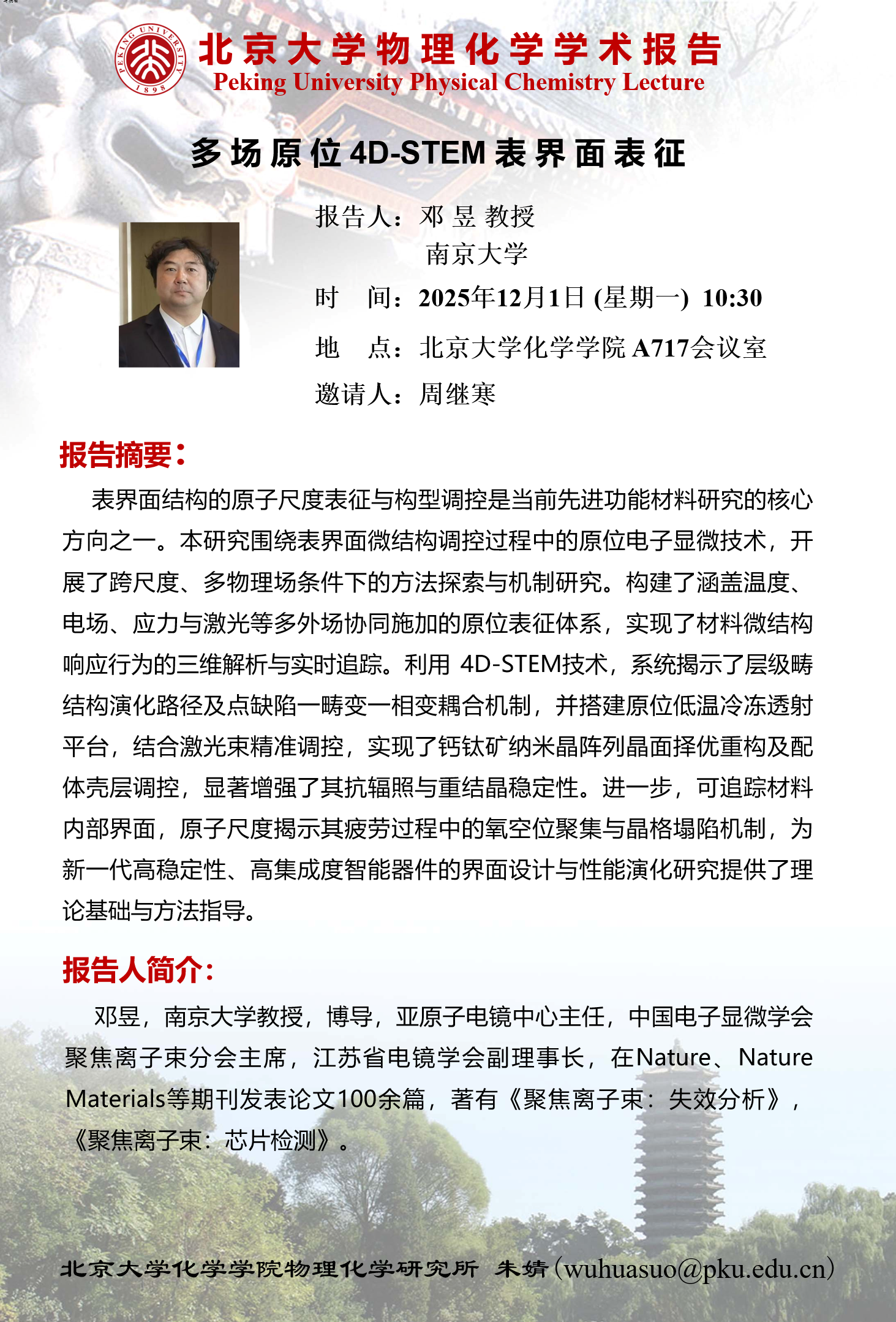 【122cc太阳成集团物理化学学术报告】多场原位4D-STEM表界面表征