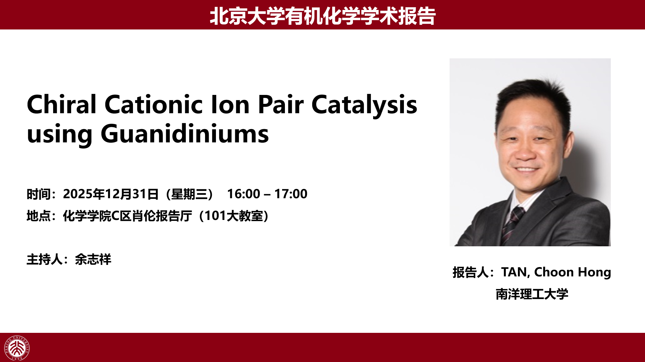 【122cc太阳成集团有机化学学术报告】Chiral Cationic Ion Pair Catalysis using Guanidiniums